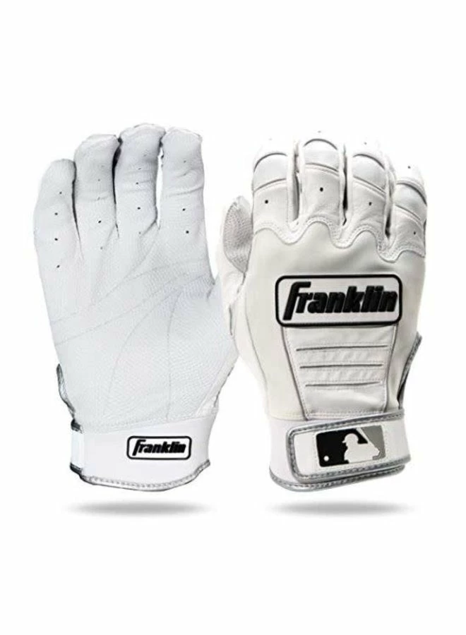FEATURES The Franklin CFX Pro Series Baseball Batting Gloves are worn by the most Franklin Pros in the majors today including stars like Dustin Pedroia, Edwin Encarnacion, Evan Longoria and Justin Upton. These major league gloves are designed to improve performance and increase grip on any bat in all weather conditions. Made with PITTARDS DIGITAL sheepskin leather the CFX Pro Series batting glove provide long-lasting softness and tactility.