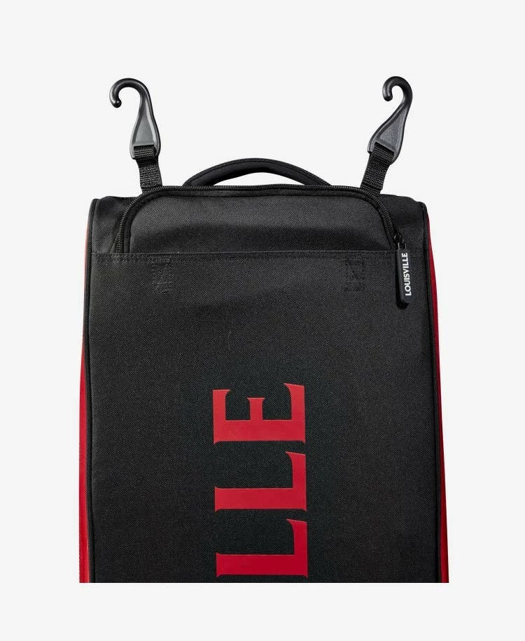 Available in a variety of colours and with a removable customization panel, the Louisville Slugger Omaha Wheeled Rig is a must-have for serious ballplayers. A zippered bat compartment comfortably fits four bats and the main compartment houses a helmet, gear and your glove. An interior L Bracket helps your bag last longer with inline wheels and integrated fence hooks for easy transport and storage.