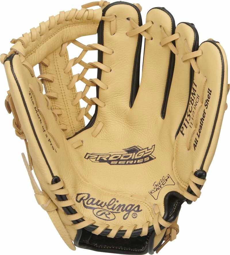Designed with smaller hand openings and lowered finger stalls, the Prodigy™ Youth Pro Taper Fit gloves provide the perfect solution for the transitioning athlete looking for a pro-style model that fits their growing hand size. Each glove’s soft, full-grain leather shell breaks in quickly and easily while still maintaining its quality and shape. #TeamRawlings
