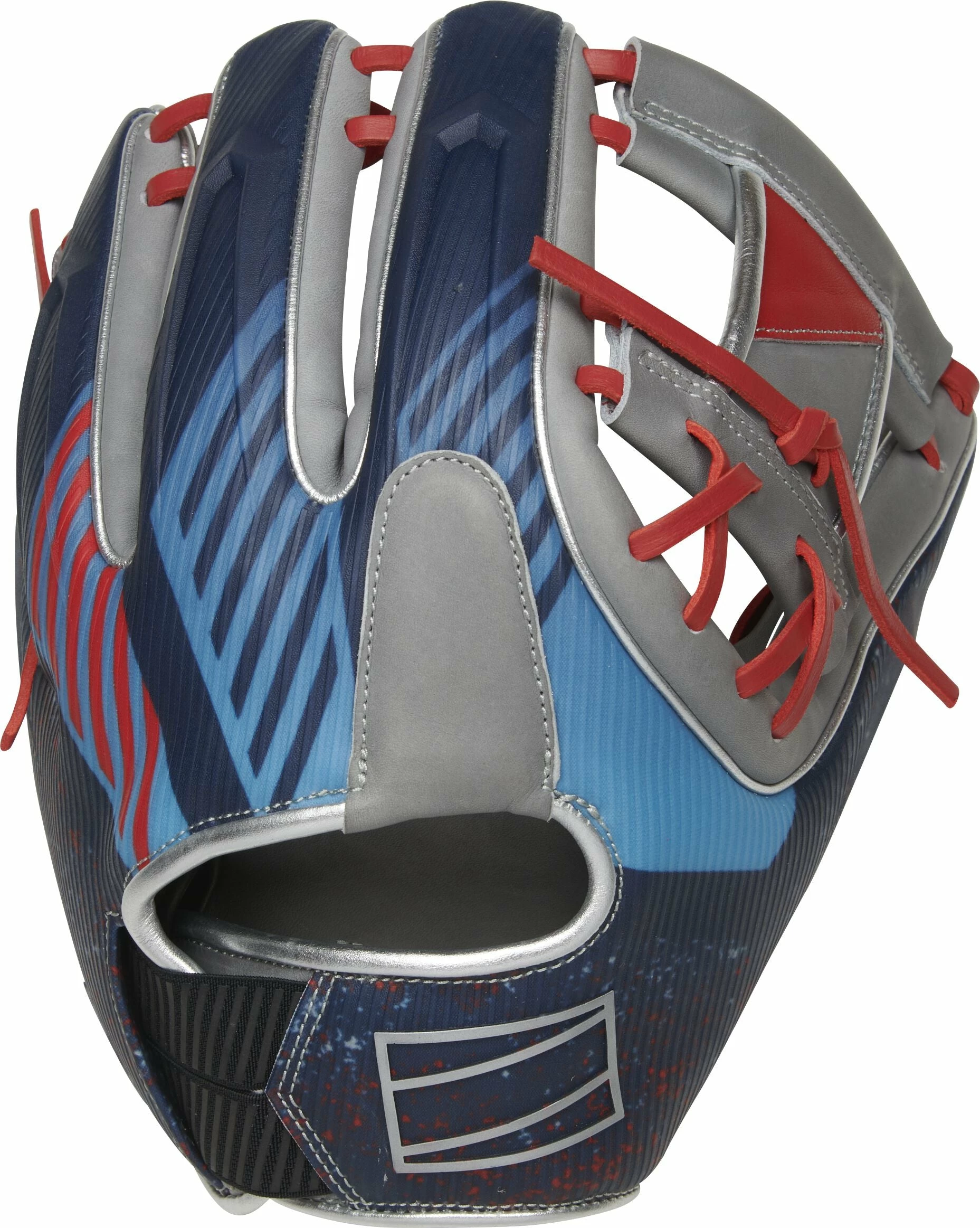 In addition, we’ve crafted our REV1X series gloves with a multi-layer back too. Each model even has its own molded, 3D-sublimated design. The 11.5-inch REV1X glove is equipped with a stylish gray, red & blue color-way with an extremely eye-catching sublimated graphic that is sure to turn heads on the field. The revolutionary lace-less I-web and heel will also help you stand out. This innovative new feature allows you to have a completely consistent feel, to make sure you’re snagging everything hit your way. And with the ultra-premium ‘HOH’ leather in all the right places, these REV1X gloves boast the same professional quality break-in & performance you expect from Rawlings.