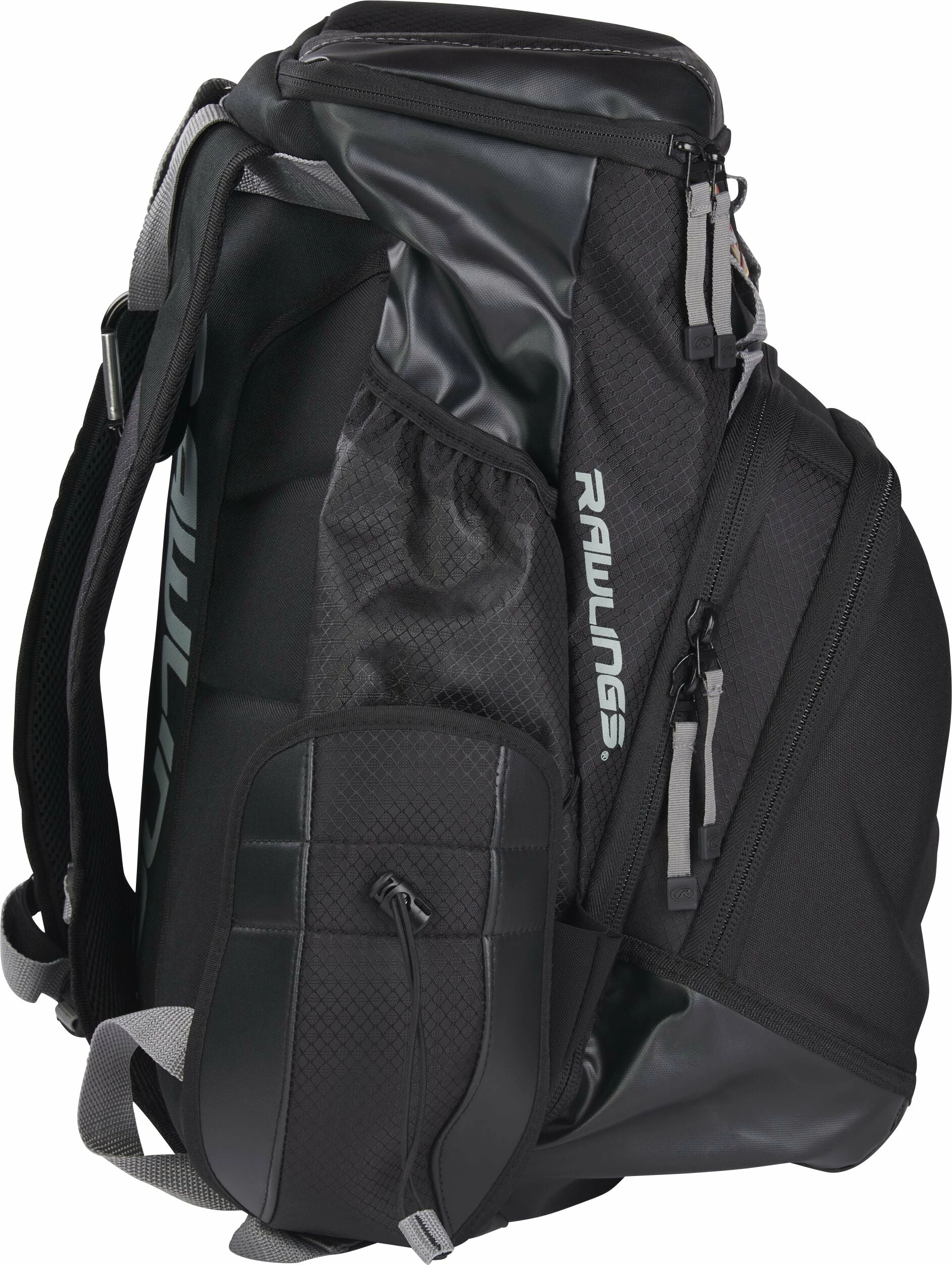 This Gold Glove® Series Backpack is the perfect bag to carry your equipment to the big game. The backpack features 2 fleece lined pockets in a valet tray for phone, accessories, etc and the main compartment converts to a game time shelf for easy access to your gear. The bag will hold 2 bats, has a customizable top valet tray, side pockets for external shoe storage, a fence carabiner, a daisy chain for external batting glove storage, customizable protective glove shell crib, a hidden magnet for easy headphone storage and an easy to clean tarpaulin bottom material.